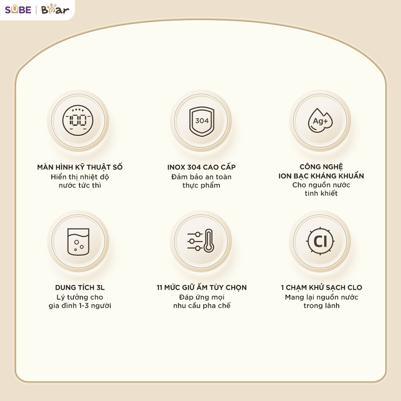 Bình thuỷ điện Bear 3L EWB-5H30C60 được làm từ chất liệu inox 304 cao cấp an toàn tuyệt đối cho sức khỏe