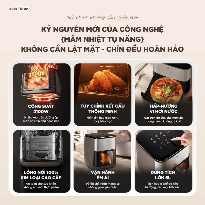 Nồi chiên không dầu Bear 6L AF-5H20J75