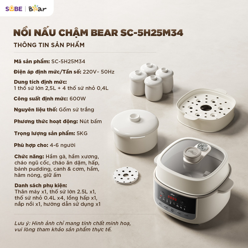 Nồi nấu chậm Bear 2.5L SC-5H25M34